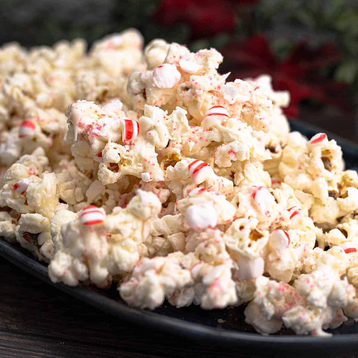 Quicker and easier than cookies, this festive treat is ready in about 20 minutes and makes the perfect holiday snack for holiday movie marathons, holiday parties, gift giving, or sneaking handfuls while wrapping presents. White peppermint flavored chocolate combines perfectly with popped popcorn and crushed peppermint candies for an irresistible flavor that will have reaching for more!