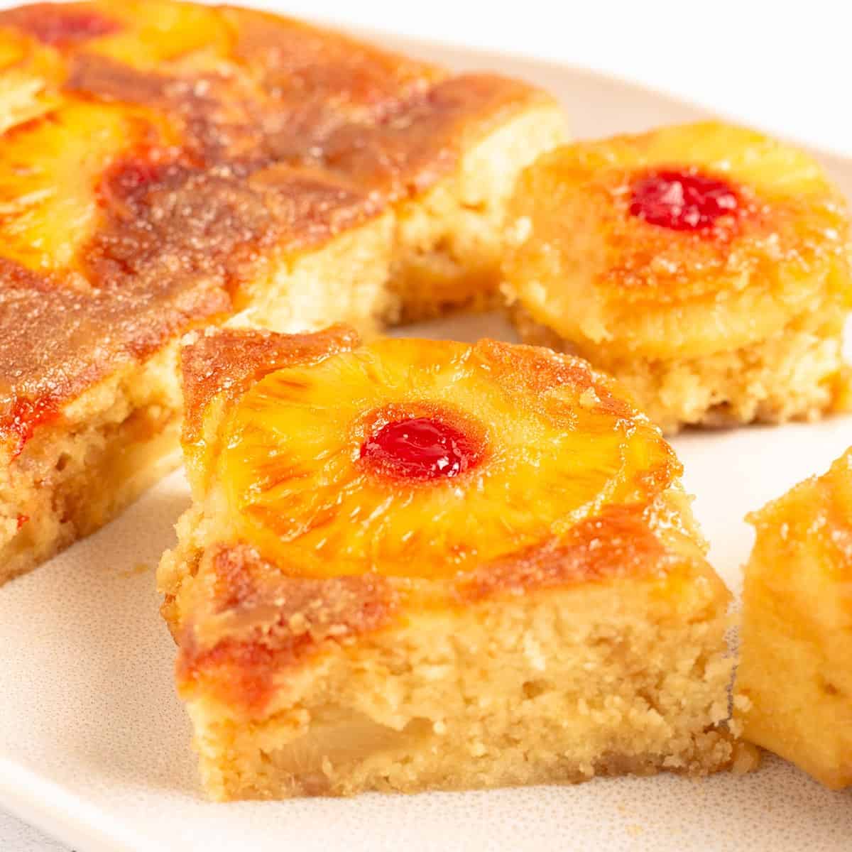 - Swap the fruit: Use canned peach slices or halved apricots in place of pineapple for a fun twist on the classic recipe. Skip the reserved juice and use a mix of water and vanilla extract in the batter instead.